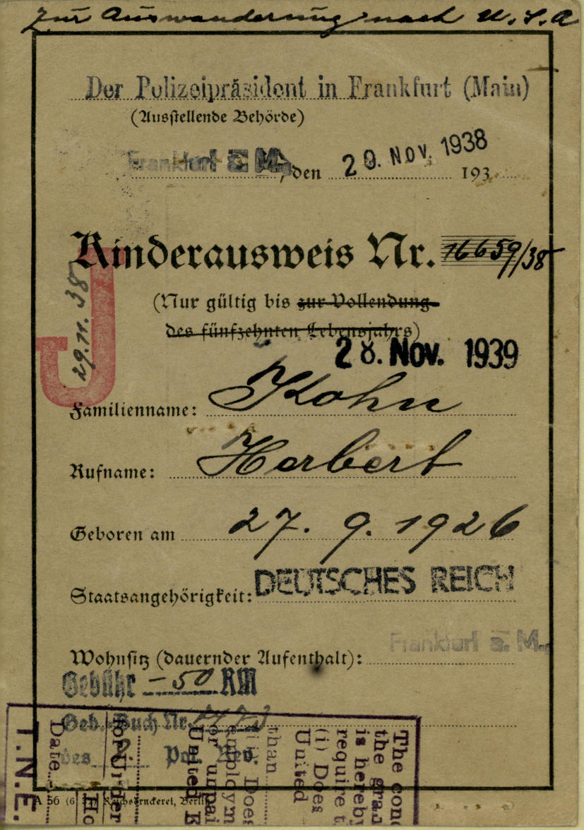Born in 1926 in Frankfurt am Main, Germany, Herbert Kohn could trace his family’s lineage in the region back to the 1400s. His father, Leo, as well as both grandfathers were World War I veterans.
